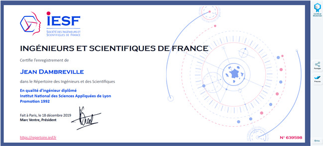 labellis un certificat d'inscription français/anglais du diplôme d'ingénieur ou de master scientifique au répertoire IESF. C'est une preuve infalsifiable pour les diplômés.